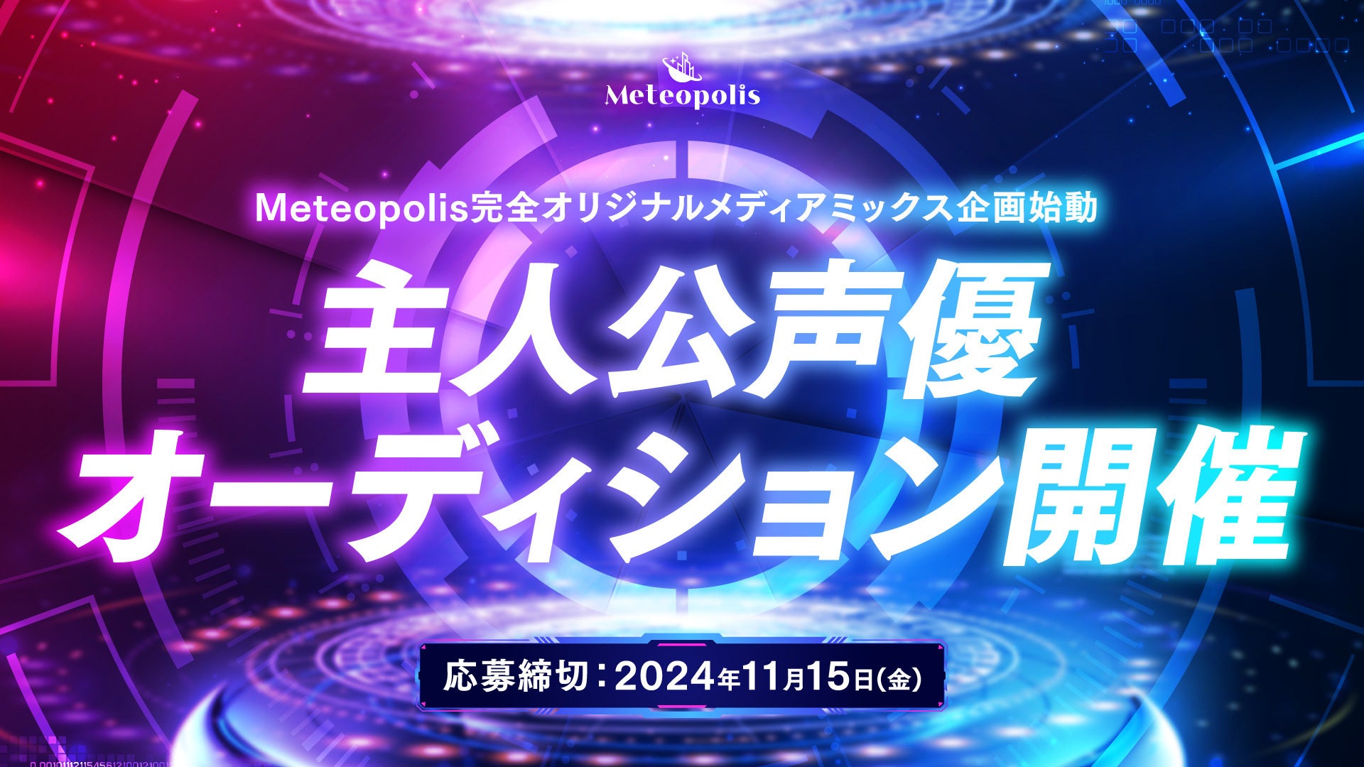 その他、新規企画の最新情報やオーディションに関する詳細は、Meteopolis 公式X(https://x.com/Meteopolis_proj/)およびオーディション応募フォーム(https://form.run/@cgr-audition-2410/)をご確認ください。